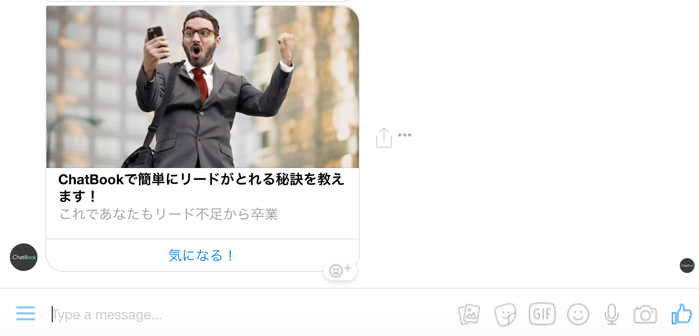 この広告をクリックするとMessengerが起動し、ボットとの会話が始まります❗